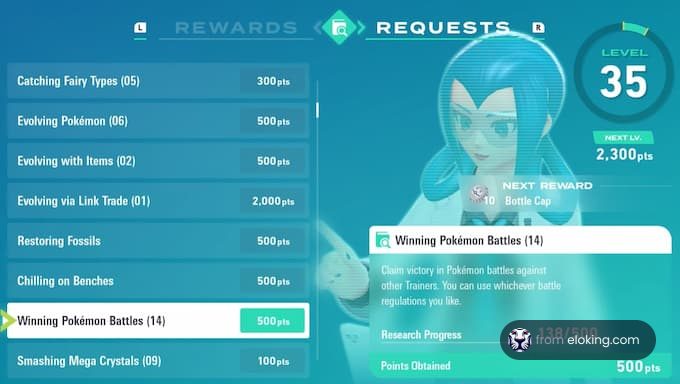 Šī viena darbība iegūst punktus par “Uzvarēt Pokémon Cīņas”, “Evolūcijas Pokémon”, “Type” pieprasījumiem un virza jūsu kopējo Pokédex ierakstu. Turklāt atkārtoti, pakāpju uzdevumi, piemēram, 50 Mega Šķembas savākšana, kas pēc tam tiek atiestatīta uz 100 Mega Šķembām, piedāvā arvien lielākas punktu balvas, mudinot pastāvīgu centību.